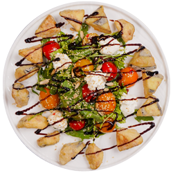 baqlajon, rukula, cherry pomidori, lolo russo, kunjut, krem chirs, arayda sous