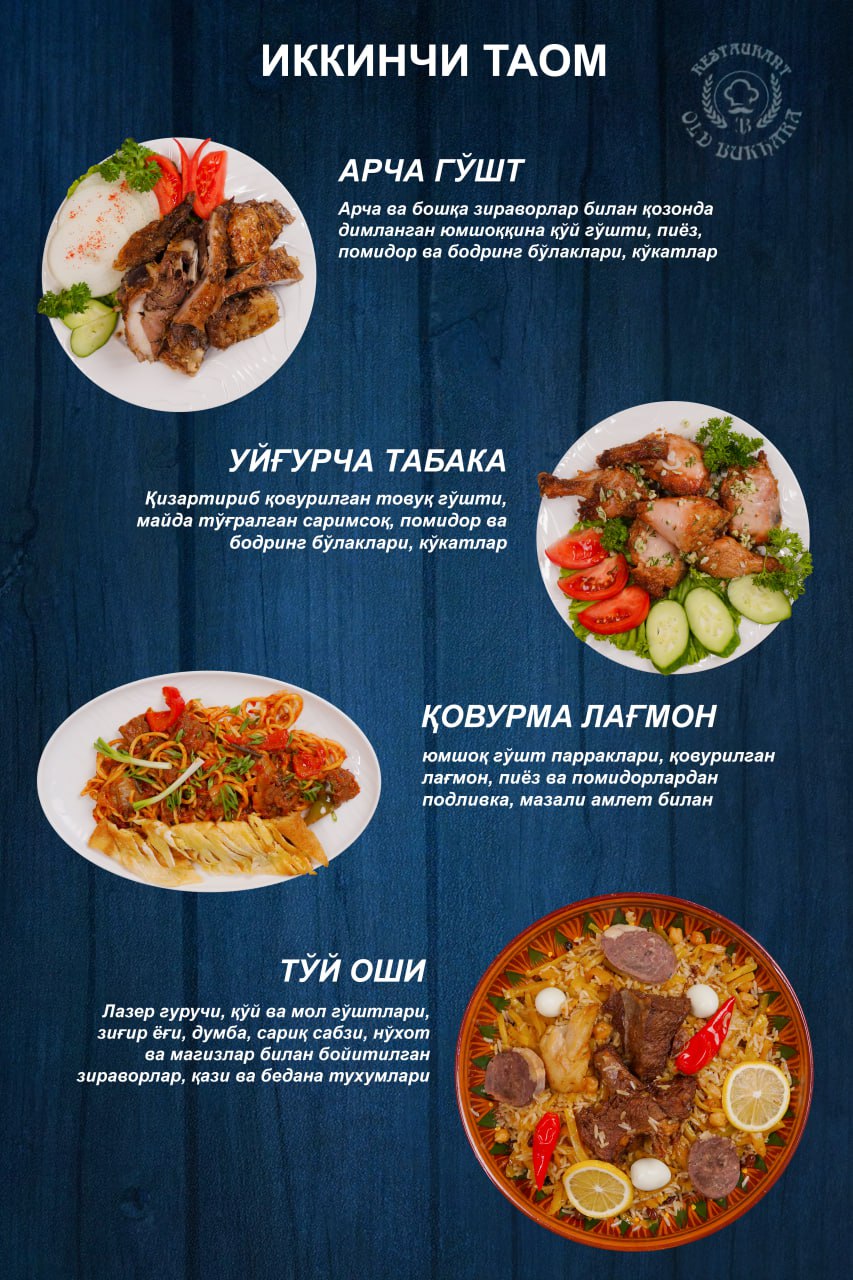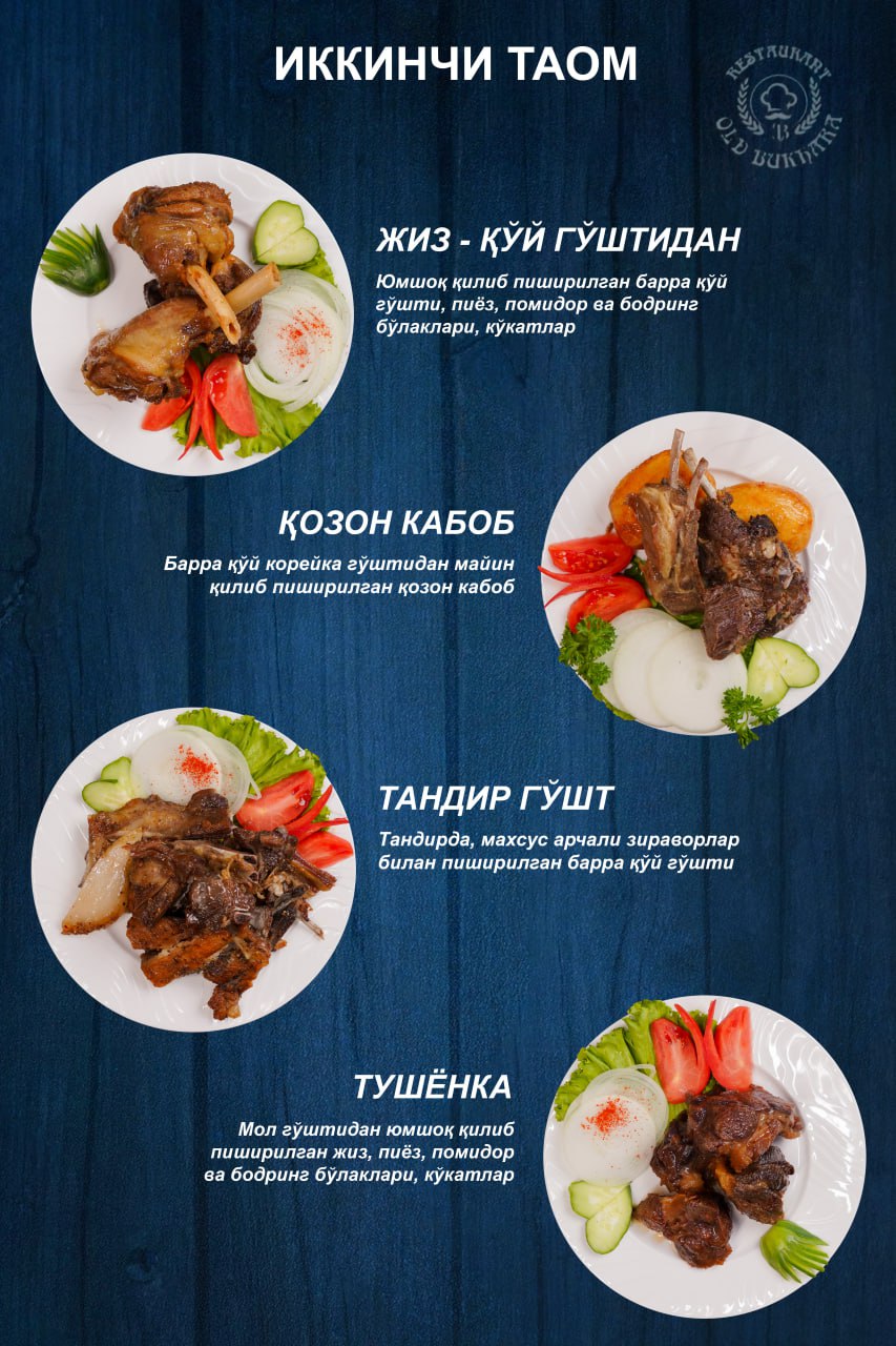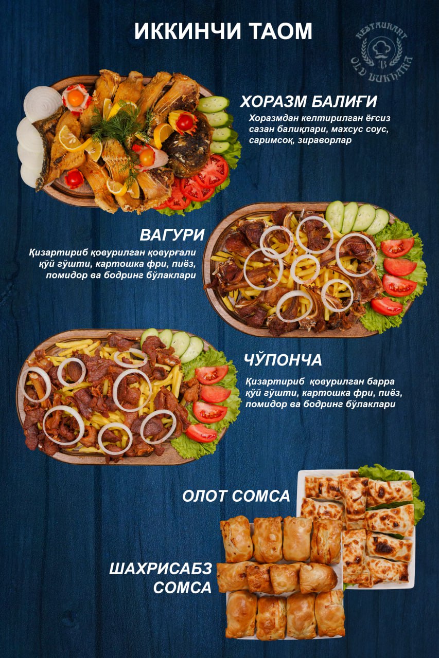 O’zingizni va mehmonlaringizni boshqa hech qayerdagiga o’xshamagan taomlar bilan xursand qiling, bu erda har bir taom eng yangi va barra ingredientlardan ehtiyotkorlik va aniqlik bilan tayyorlangan lazzatning durdonasidir.